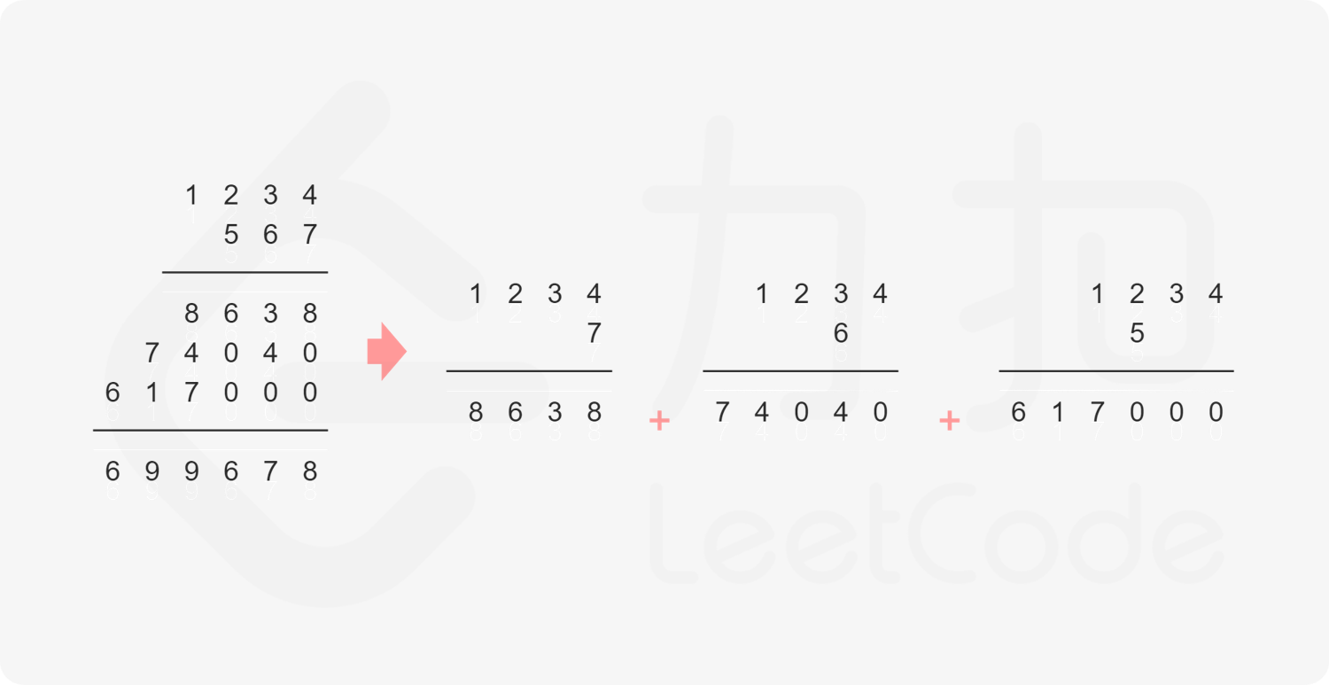 给定两个以字符串形式表示的非负整数 num1 和 num2,返回 num1 和 num2 的乘积,它们的乘积也表示为字符串形式。