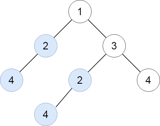 输入:root = [1,2,3,4,null,2,4,null,null,4]