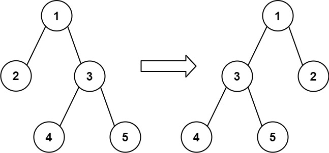 解释:交换节点 2 和 3 来翻转节点 1 ,先序遍历可以匹配预期行程。