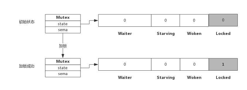 从上图看,加锁成功后,只是 Locked 置为1,其他状态位没发生变化。