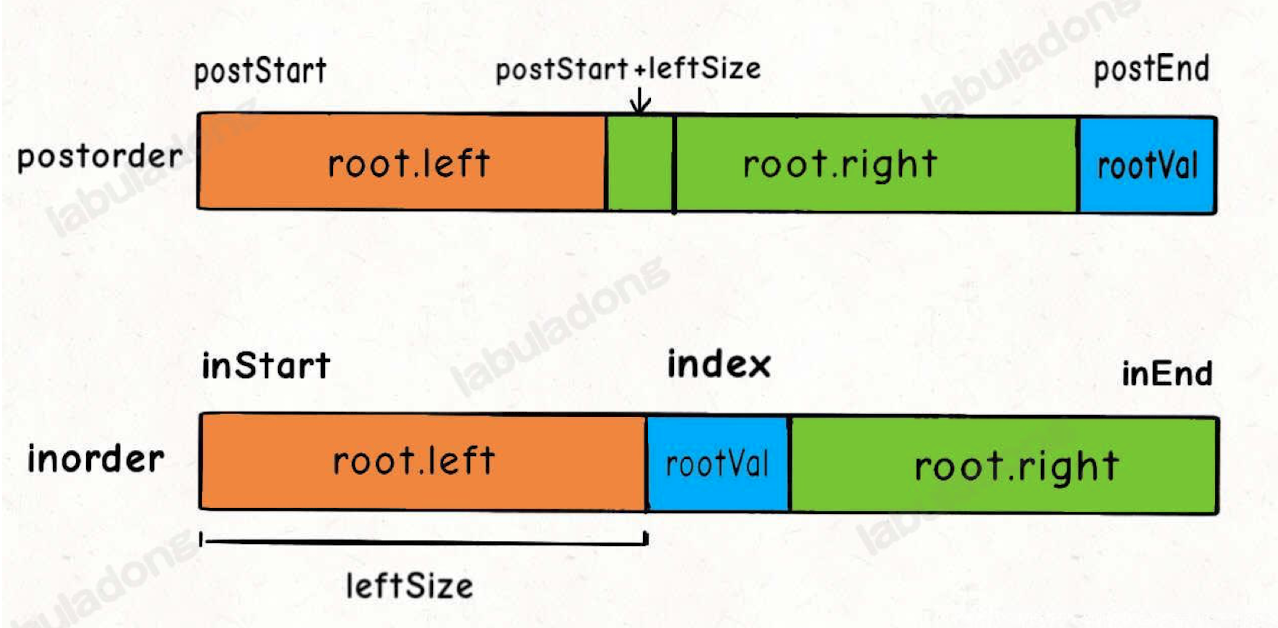 给定两个整数数组 inorder 和 postorder ,其中 inorder 是二叉树的中序遍历, postorder 是同一棵树的后序遍历,请你构造并返回这颗 二叉树 。