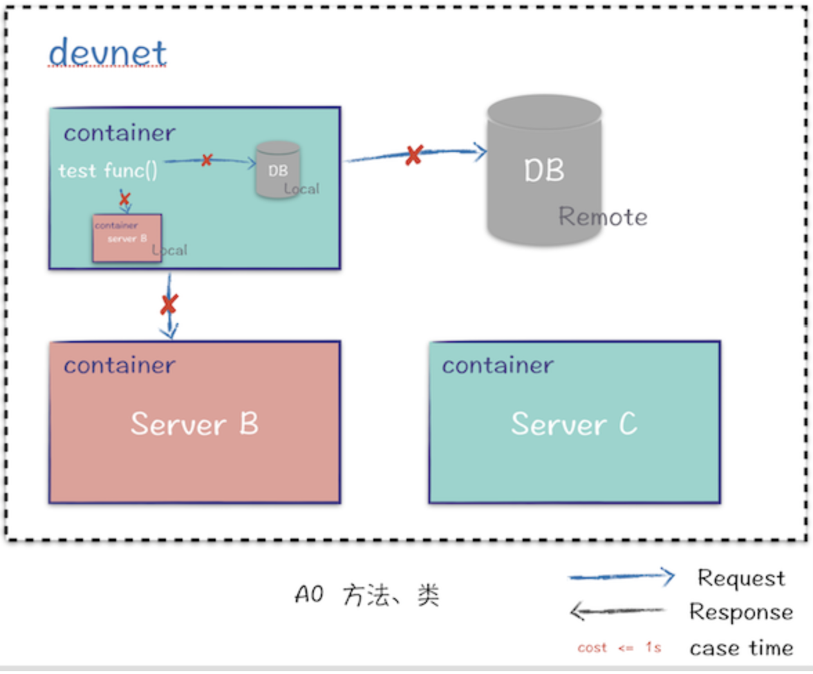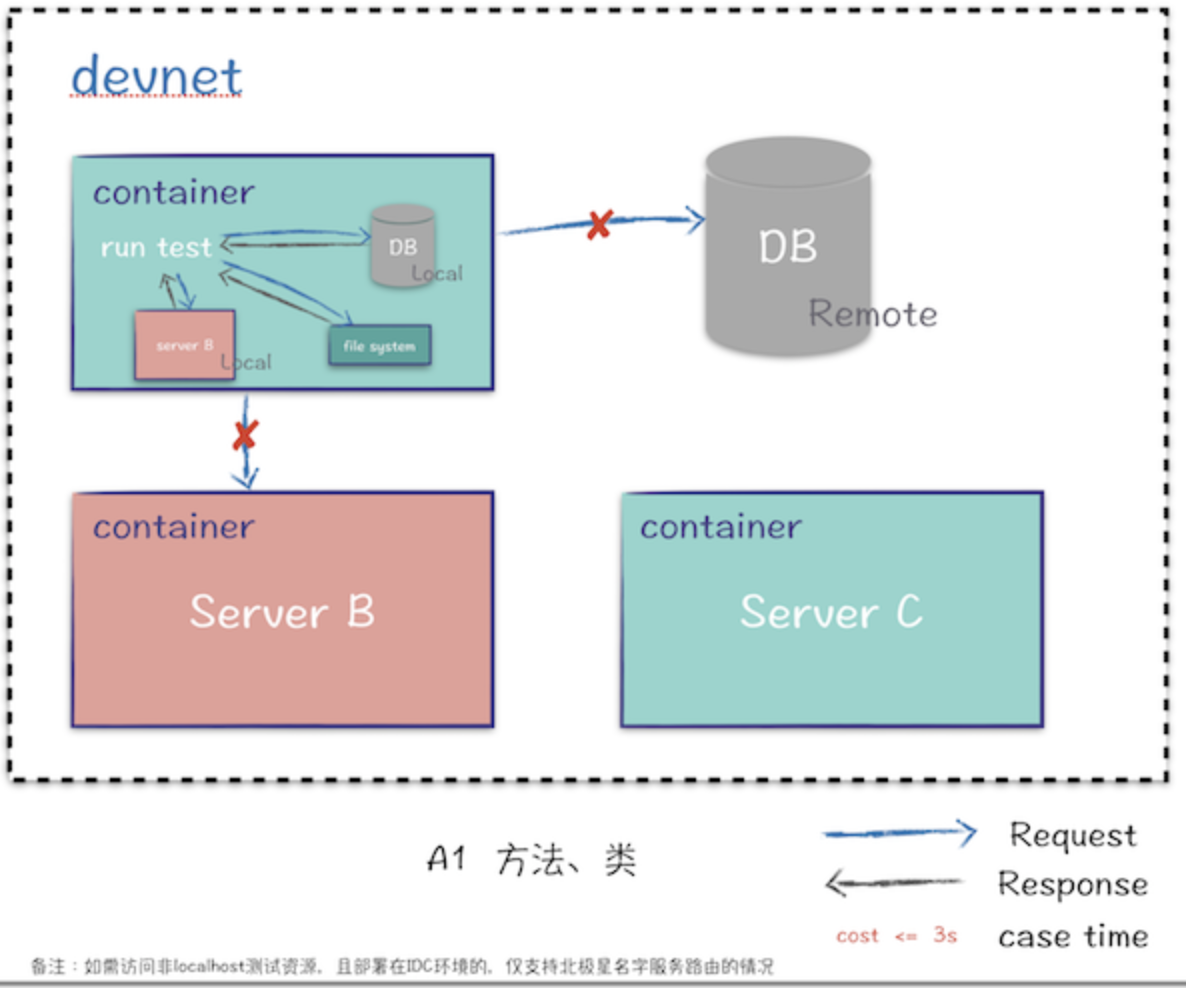 | A1 | 对程序的方法、类进行测试;注重服务内部模块间的集成验证,除依赖代码以外,还可以依赖本地资源(“本地”即访问网络为 localhost,依赖的本地资源包括本地数据库、本地文件系统、同进程 mock 或者本地测试替身等),测试用例和被测服务在同进程,建议单用例执行耗时上限在 1s 以内(SDK 同样适用)。 |